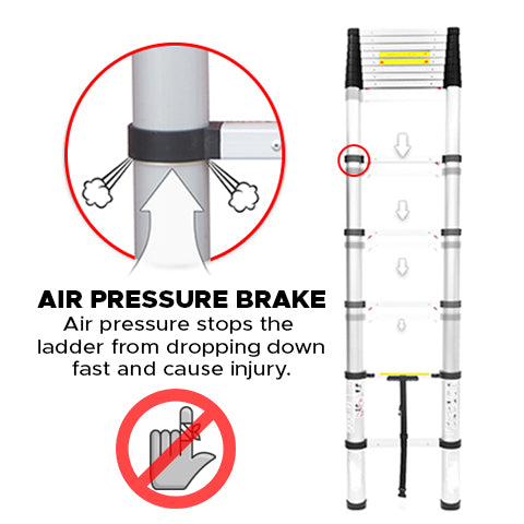 ✅ Convenient: This ladder can be easily extended, and then retract it to 2.9 feet with one button retraction! The innovative air brake system helps avoid pinched fingers!