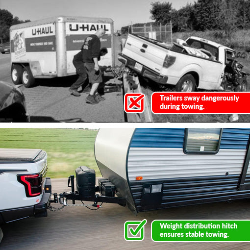 “Setup was super simple compared to other hitches I’ve owned, and I didn’t need any messy grease. The sway control adjusted on its own, and the motion-dampening chains made my trailer ride so much smoother. I barely noticed it was even back there. Highly recommended for anyone who wants to tow safer without the hassle.” -James T.