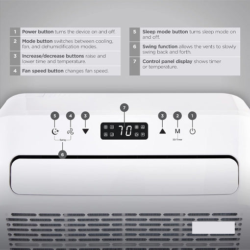 ✅All-Season Control: This AC features a bright LED screen and intuitive controls, lets you toggle between cool, fan, or dehumidifier modes, set your preferred temperature (60–86°F), adjust swing, activate sleep mode, or set a timer.