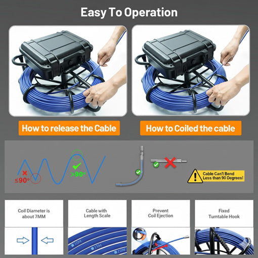 ✅ Portable and Self-Leveling: Heavy, bulky inspection tools can be hard to move and set up. This lightweight system comes with a portable cable reel and a 150 ft, 7 mm thick cable for easy transport. The built-in self-leveling 1000TVL camera automatically keeps images upright, saving time and making inspections easier anywhere.