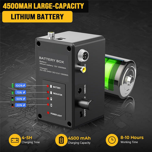 ✅ Durable and Long-Lasting: The IP68 waterproof stainless steel camera head measures 0.9 inch (23 mm) in diameter with a 4.7 inch (120 mm) flexible spring for navigating bends. The rechargeable 4500mAh lithium battery powers up to 8–10 hours of continuous work, with depth markers on the cable for accurate measurement during inspections.